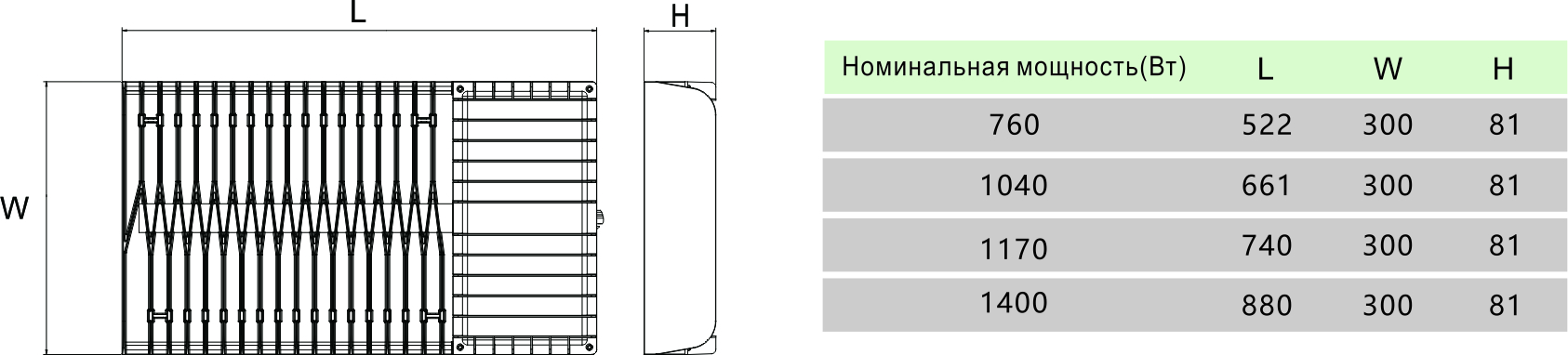 | Rated power(W) | 760 | 1040 | 1170 | 1400 | ||